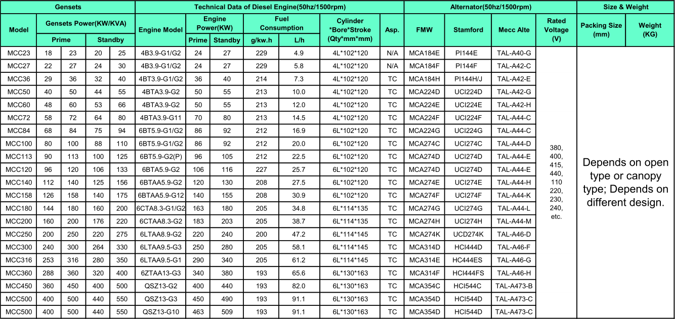 1. Cummins Engine Generator Main Specification
